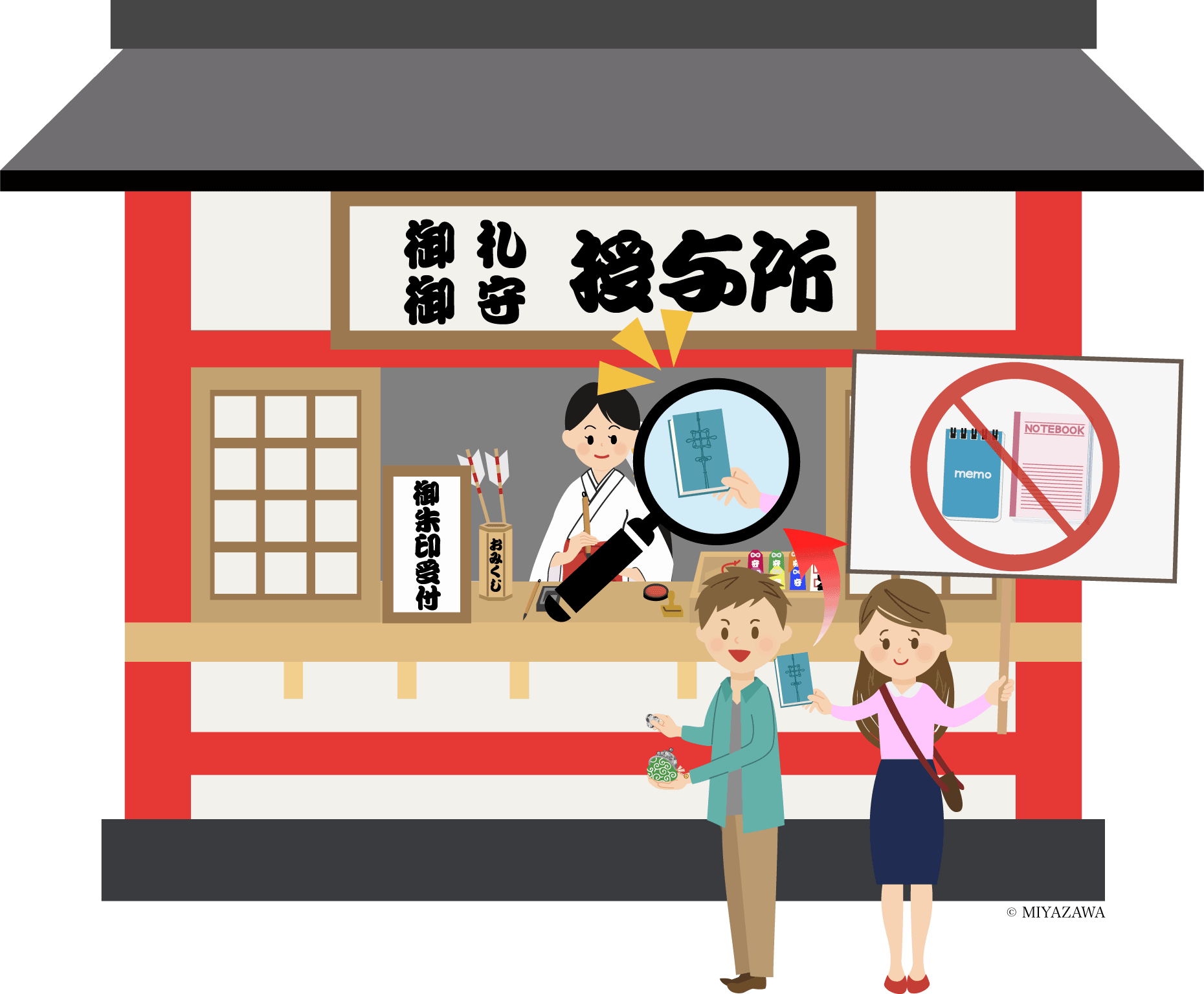 「せっかく来たけど御朱印帳を持ってくるの忘れた・・・。」だから「なんでもいいから御朱印をもらおう!」とノートやメモ帳などの裏に書いてもらおうとするのはマナー違反です。御朱印帳以外のものに御朱印をお願いしてしまうことは失礼です。