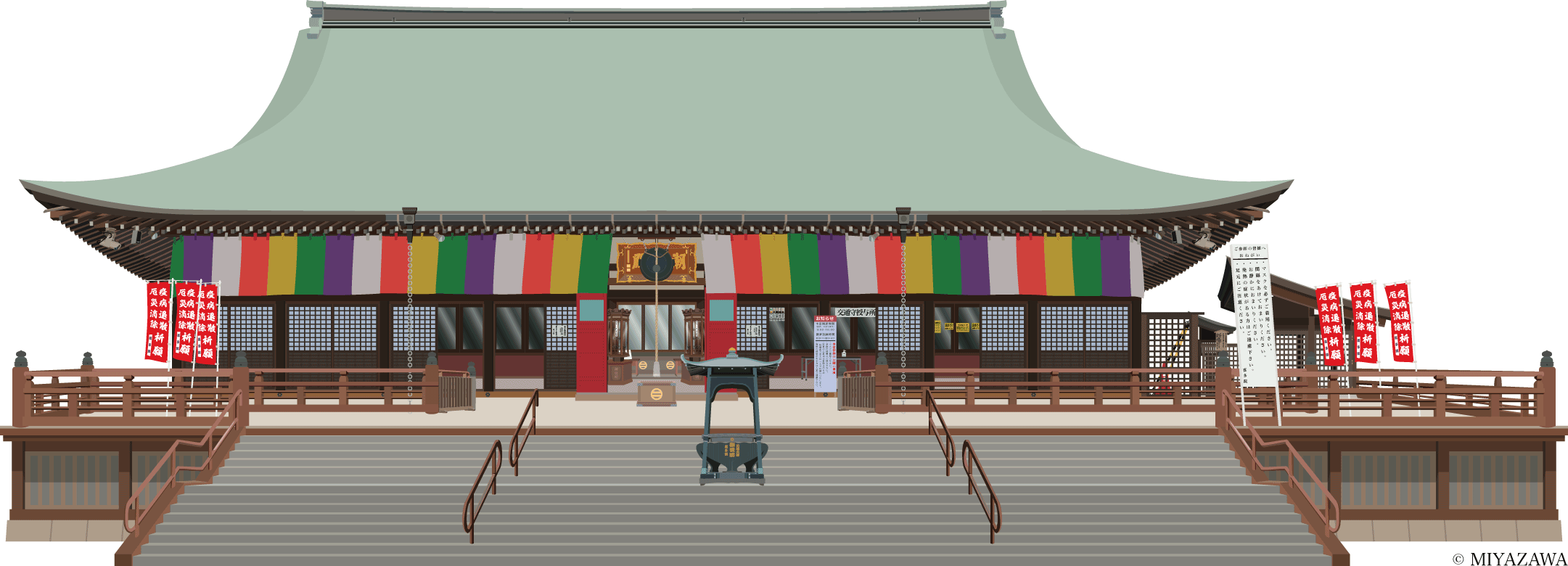 本堂で参拝を行ってから、境内さんぽを始めましょう。